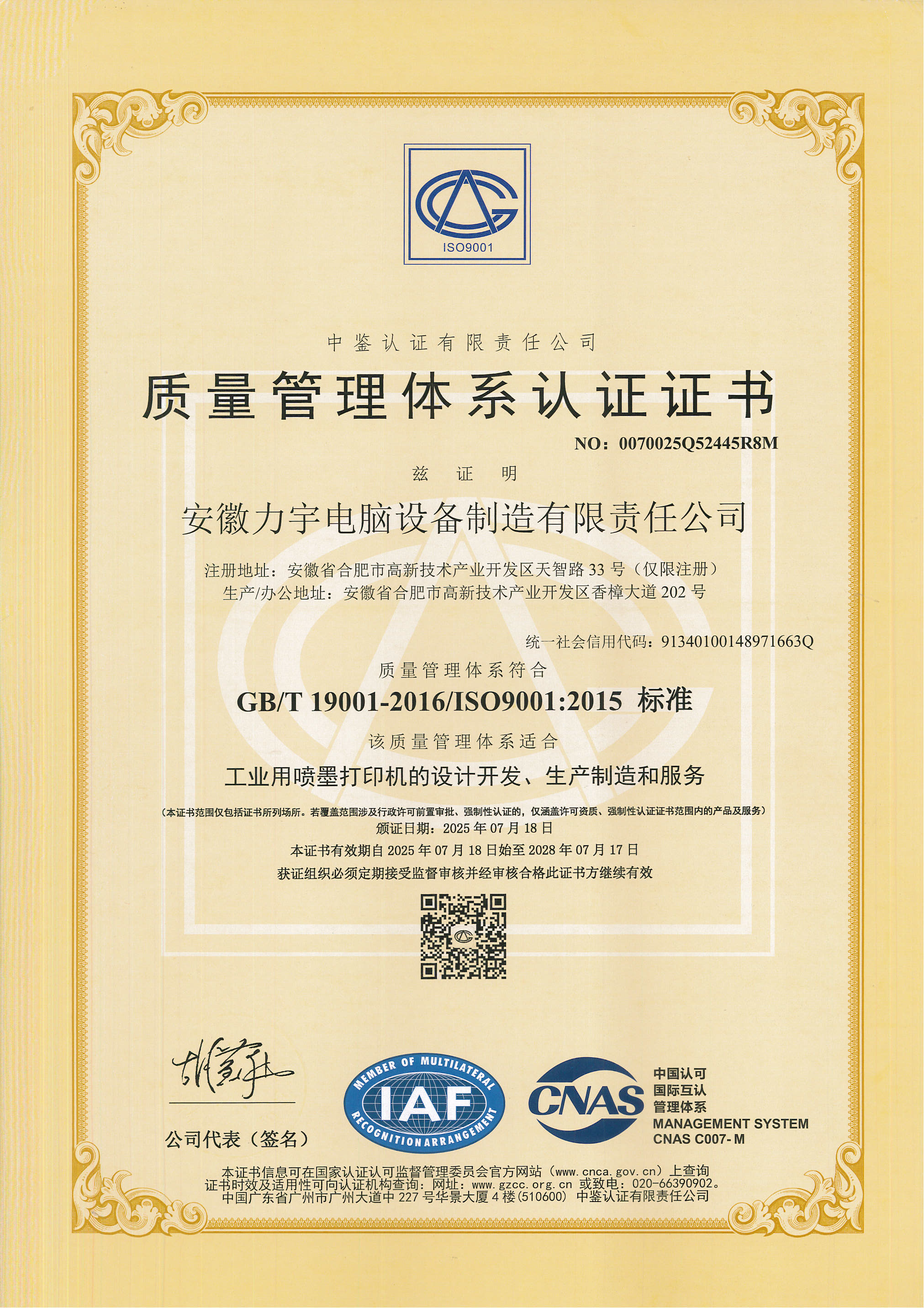 2025-2028質(zhì)量管理體系認(rèn)證證書(shū)